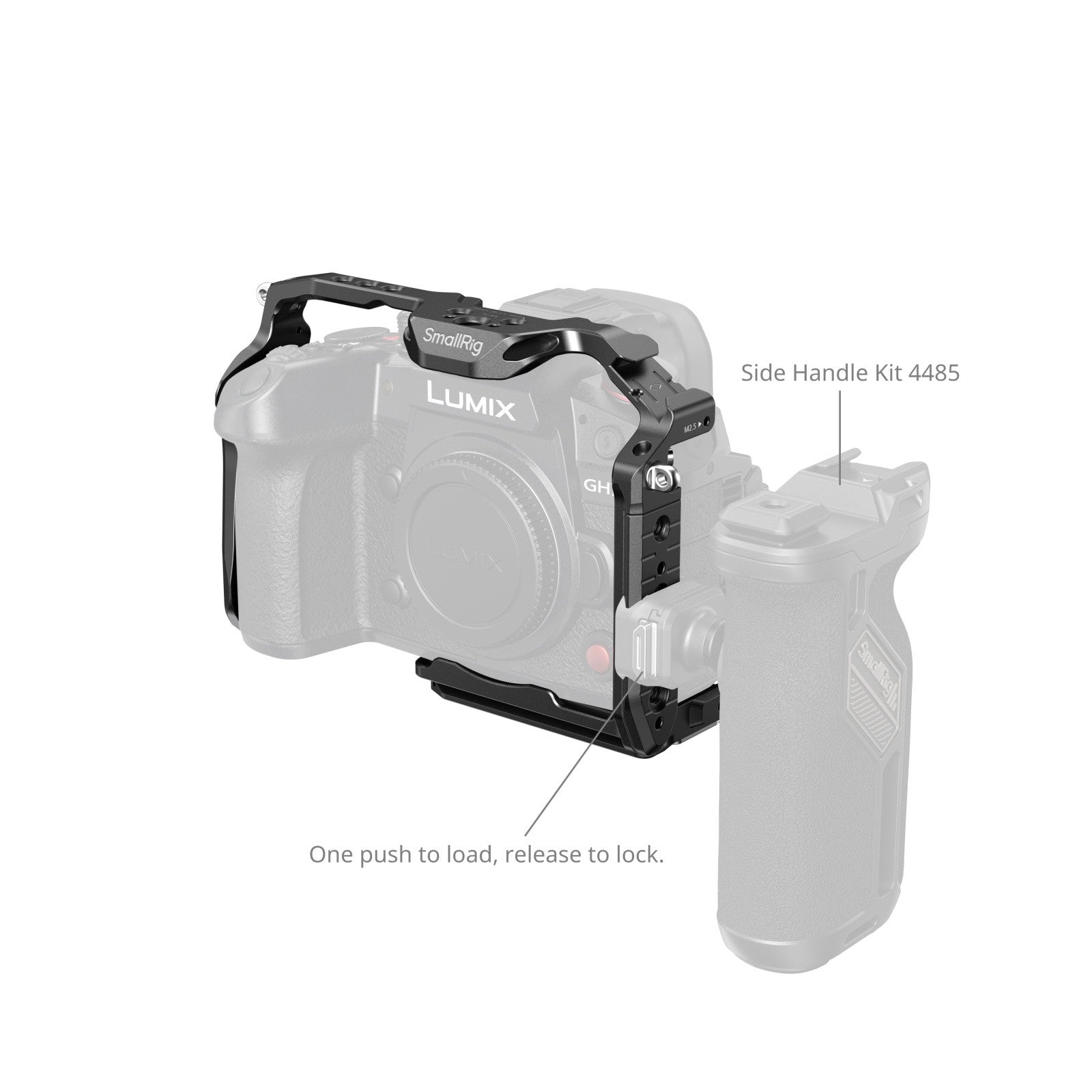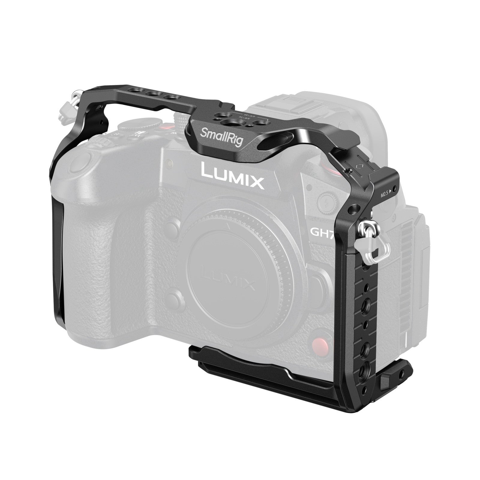 3. Triple-point locking: fixes camera via one bottom one 1/4"-20 screw and the two M2.5 screws on both sides.