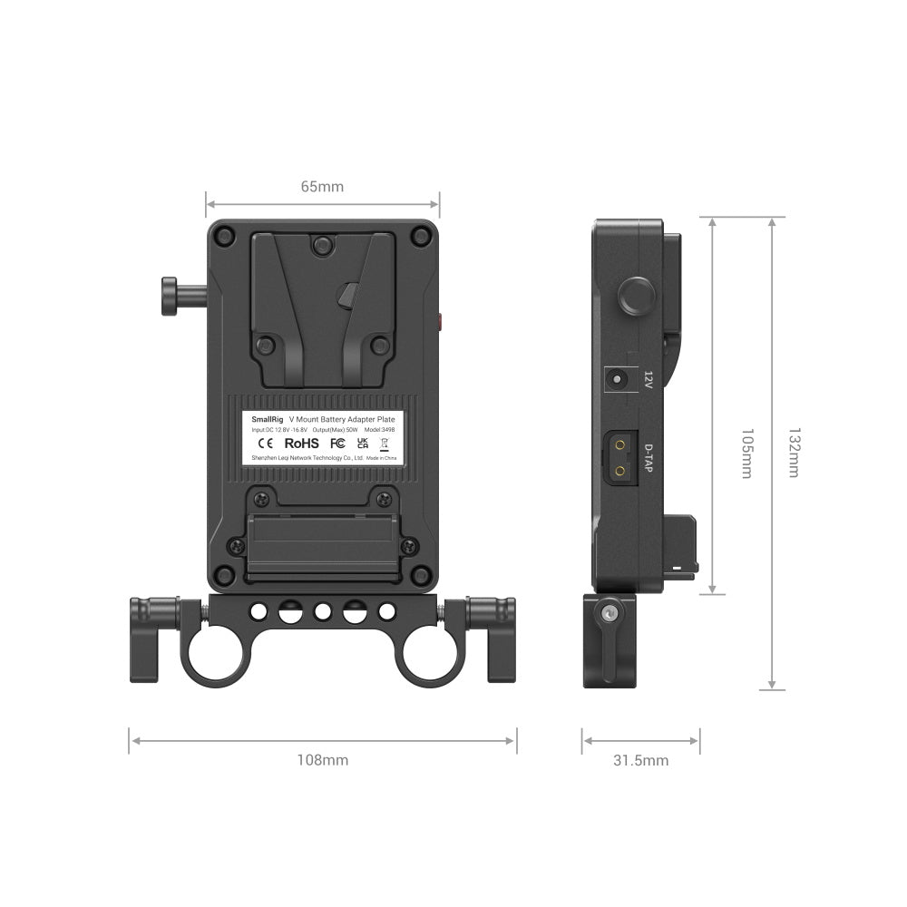 SmallRig V Mount Battery Adapter Plate (Basic Version) with Dual Rod Clamp 3498